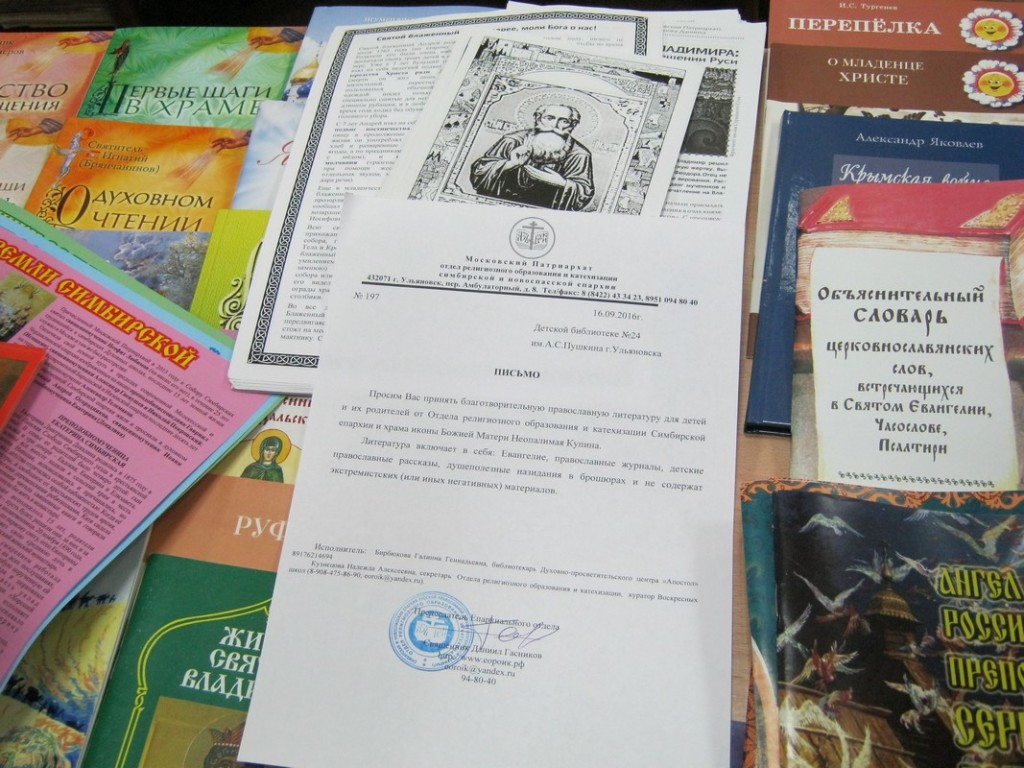 «Неопалимая Купина» передали в дар детской библиотеке № 24 им. А.С.Пушкина благотворительную литературу для детей и их родителей. Литература включает в себя : Евангелие, детские православные рассказы,душеполезные назидания в брошюрах,советы православных священников в брошюрах, православные журналы. Руководство детской библиотеки выразило горячую признательность и готовность и в дальнейшем сотрудничать по данной тематике.
