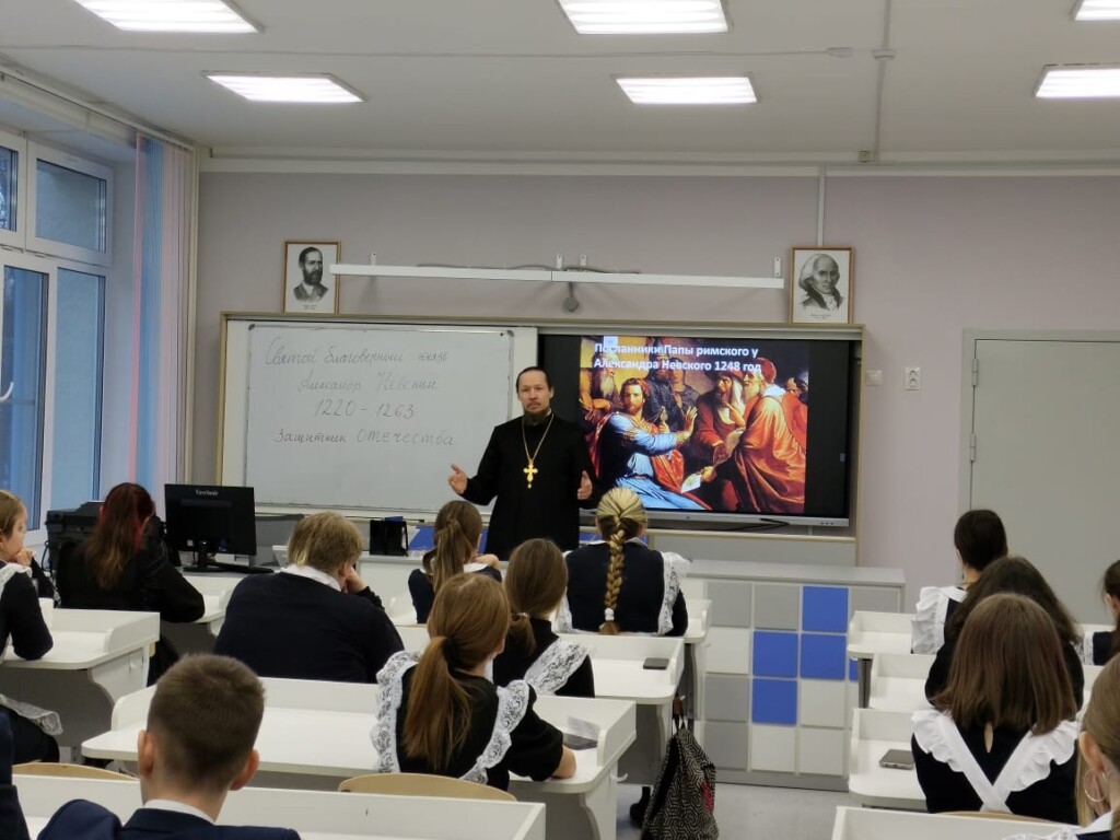 В ходе проведения урока священники, опираясь на методические материалы, предоставленные Отделом религиозного образования и катехизации, рассказали о жизни и военных подвигах Александра Невского. Особый акцент был сделан на то, что, как и любой православный святой, благоверный князь — был не идеальный безгрешный человек, но в первую очередь правителем, который в своём служении руководствовался высшими христианскими добродетелями, в том числе милосердием и человеколюбием, а не жаждой власти и не корыстью.