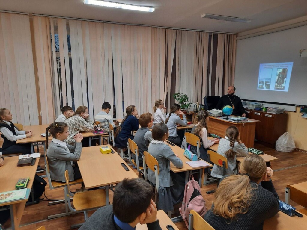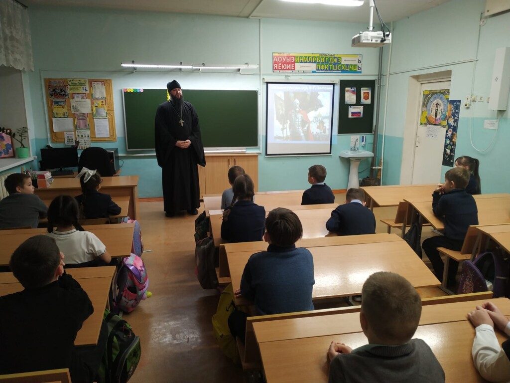 5 декабря клирики храма в честь иконы Божией Матери «Неопалимая Купина» по благословению митрополита Лонгина провели открытые уроки на тему: «Значение святого благоверного великого князя Александра Невского в русской истории». Занятия прошли в школах №15, №34 и №46.