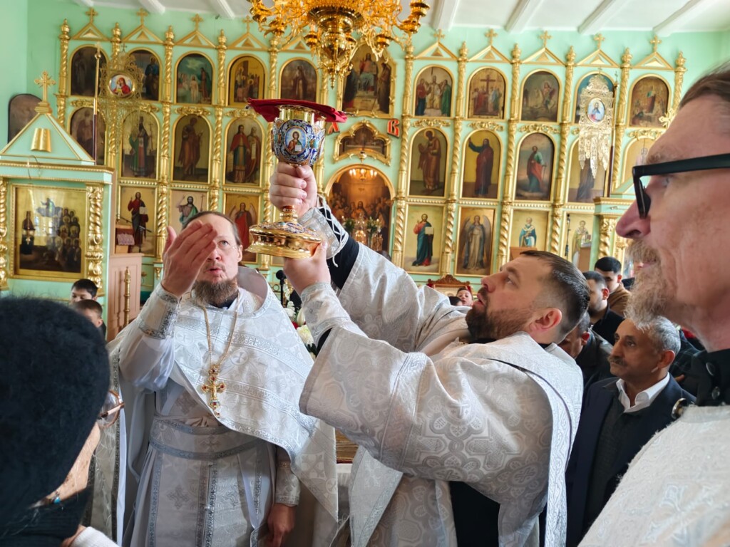 По заамвонной молитве была вознесена молитва о мире на Святой Земле. После отпуста Литургии было совершено благословение хлебов и вина.