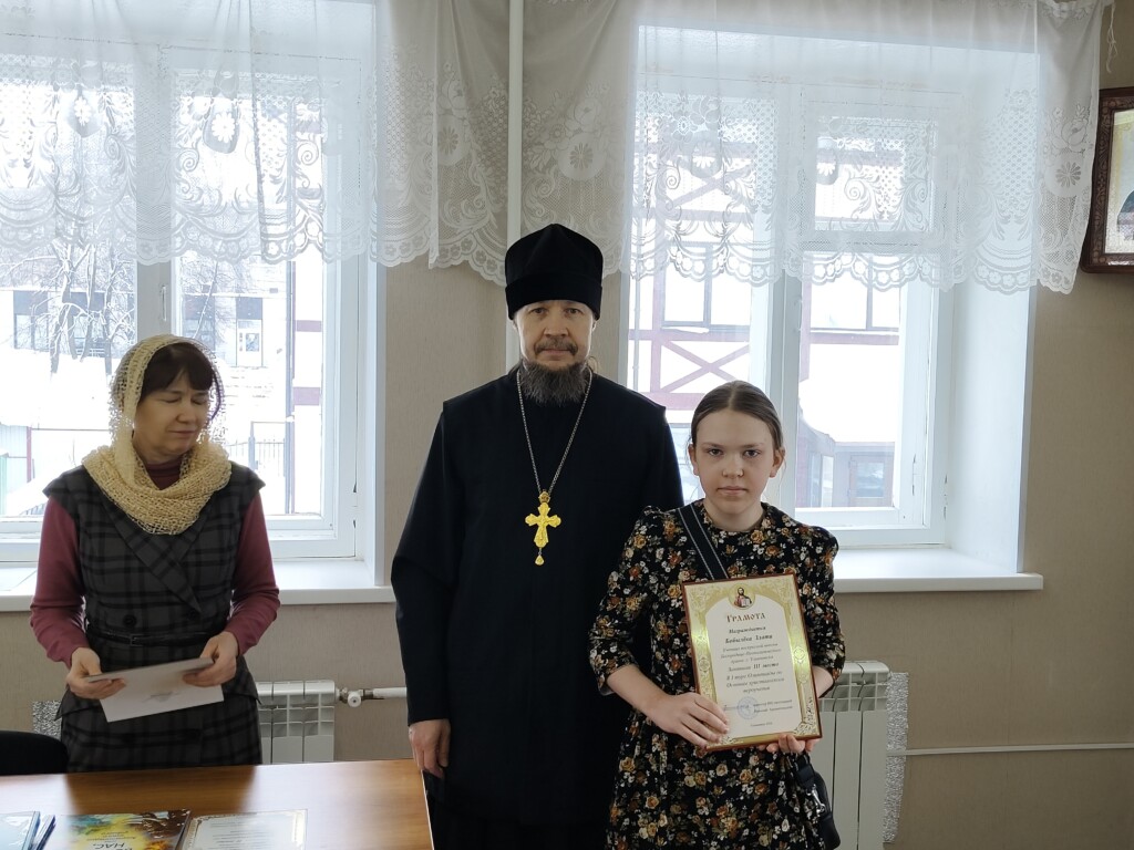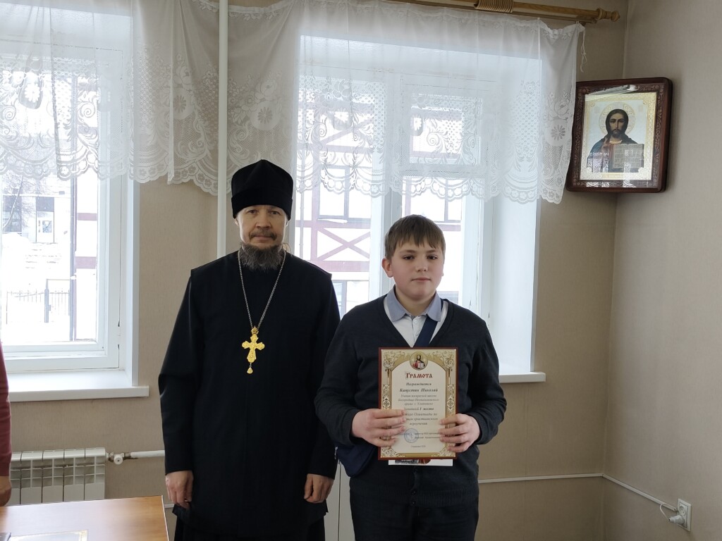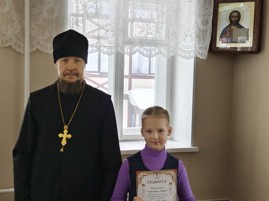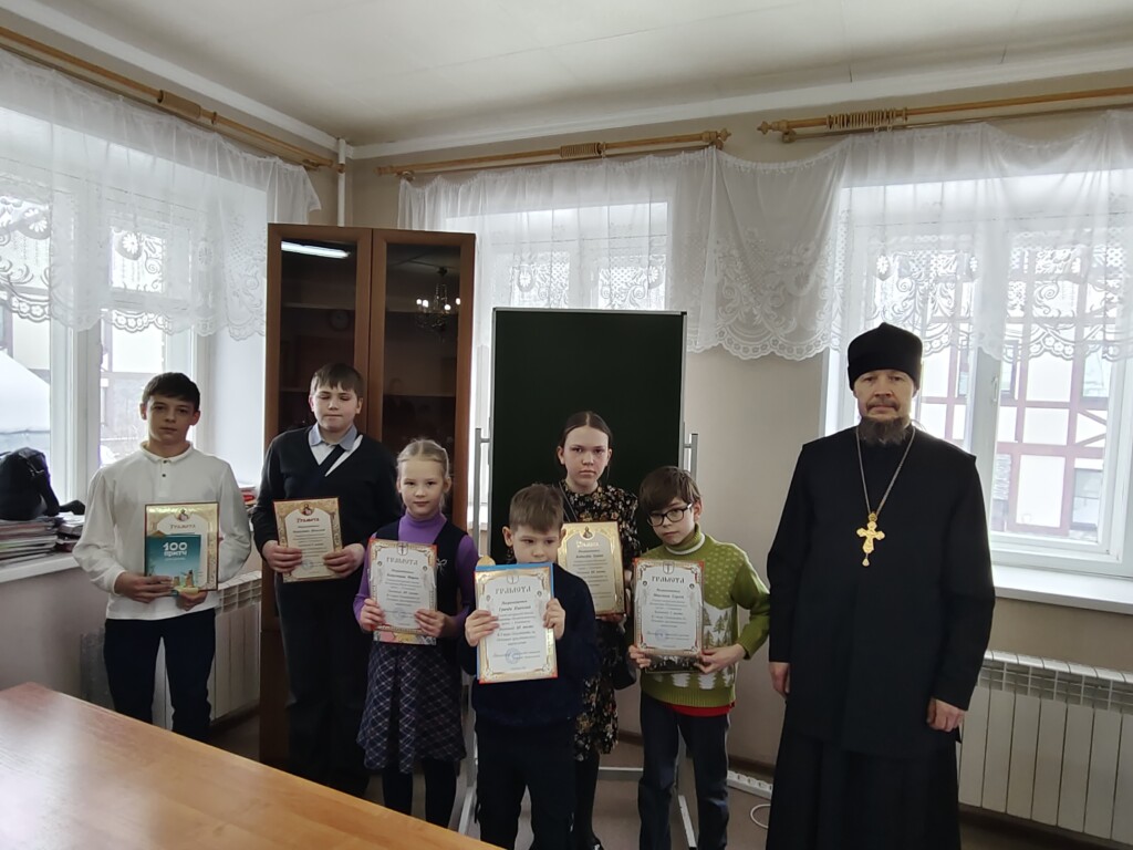 01.03.2026 в воскресной школе Богородице-Неопалимовского храма состоялось награждение победителей первого тура ежегодной Православной олимпиады, в которой приняли участие 30 детей. Православная олимпиада организована Отделом Религиозного образования Симбирской епархии. Почетные грамоты и подарочные книги были вручены детям директором воскресной школы протоиереем Николаем Архангельским.
