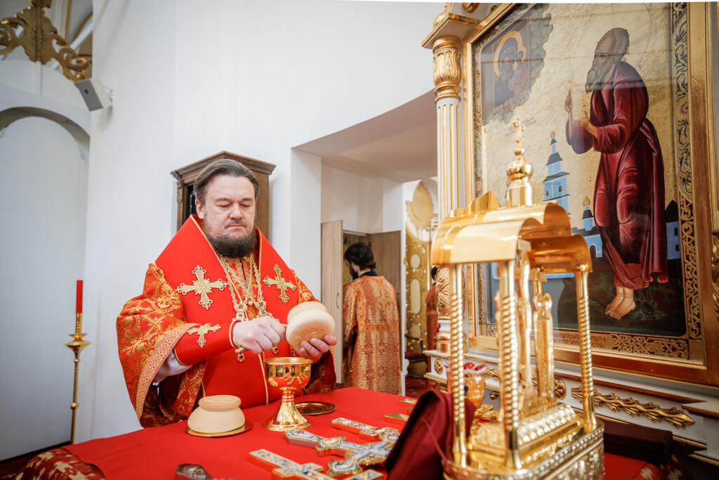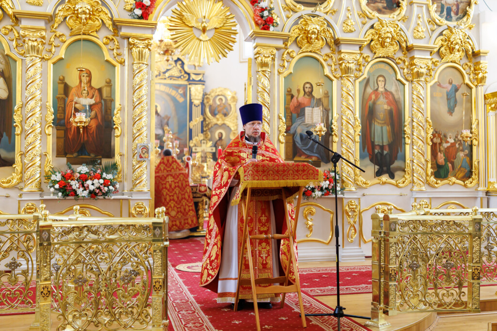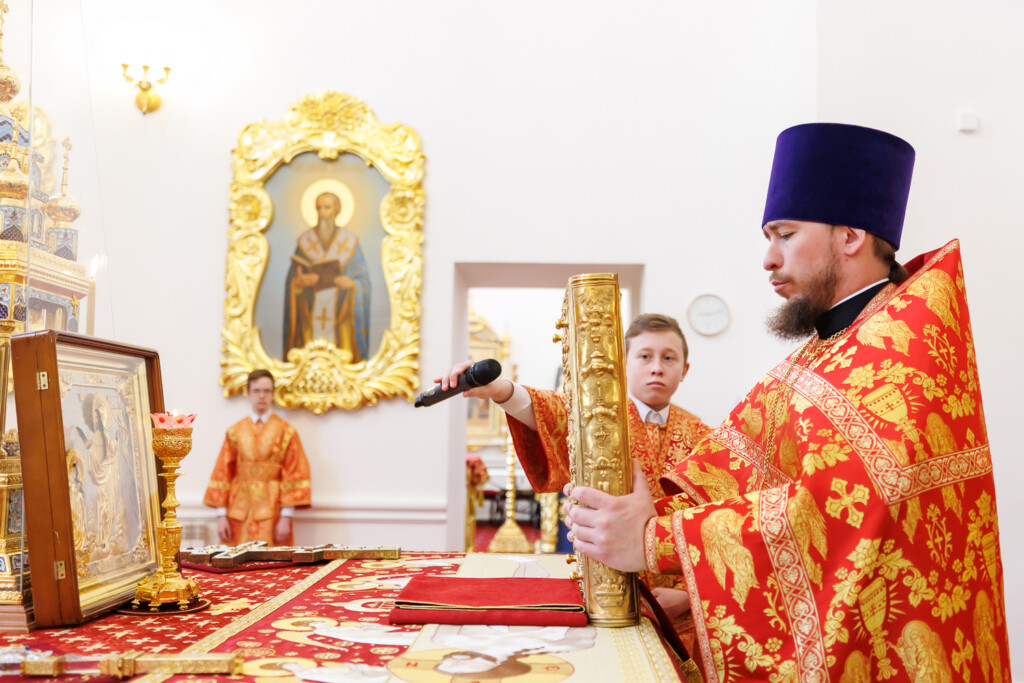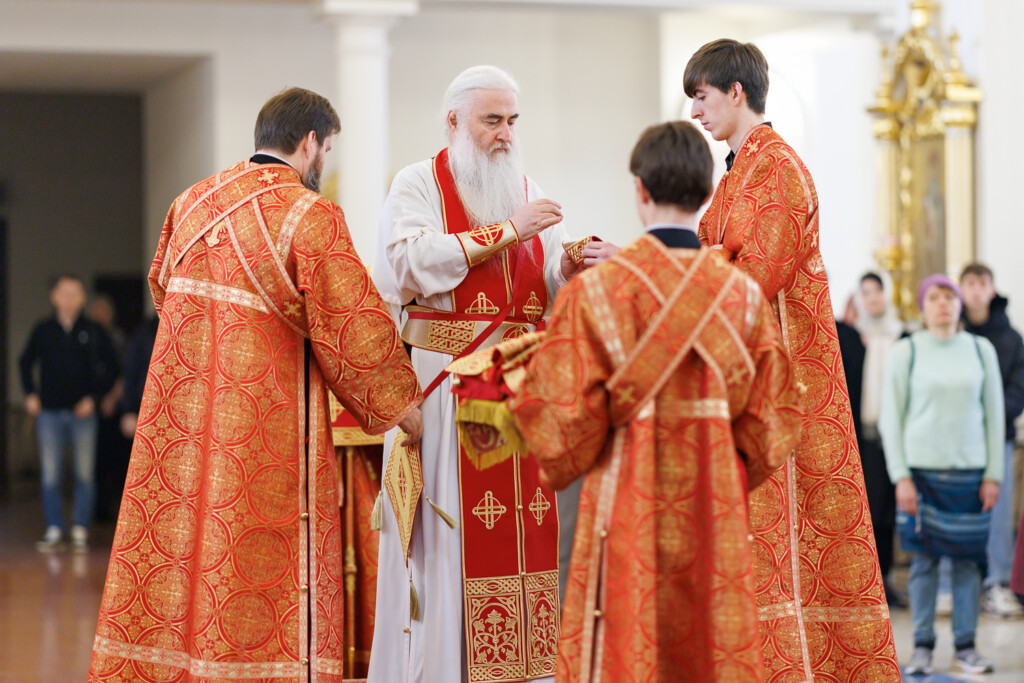 За богослужением пел Смешанный хор Спасо-Вознесенского собора под управлением регента Романа Хитёва.