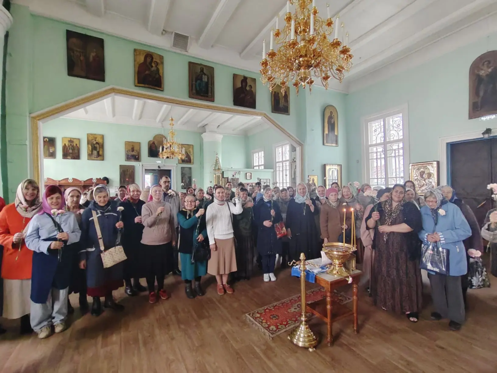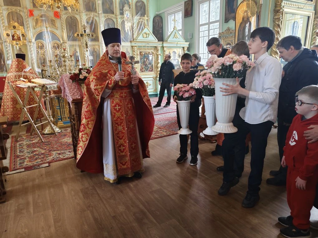 По окончании Божественной Литургии отец Николай поздравил прихожанок с этим чудесным праздником и подарил им цветы.